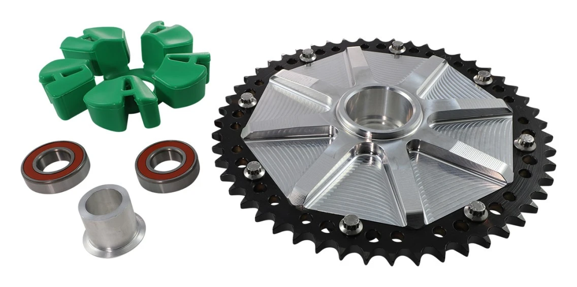 Upgrade your motorcycle with precision-engineered components, including a CNC-machined billet aluminum carrier and hub adapter paired with a sprocket crafted from 1026 medium- to high-carbon steel. This versatile kit is designed to seamlessly fit both stock and aftermarket wheels, ensuring compatibility and durability. Manufactured in the USA, it comes complete with essential features like a stainless steel lock spring, two bearings, and a bearing spacer for optimal performance. Use it with a .750″ offset front sprocket (sold separately) to achieve a customized setup.