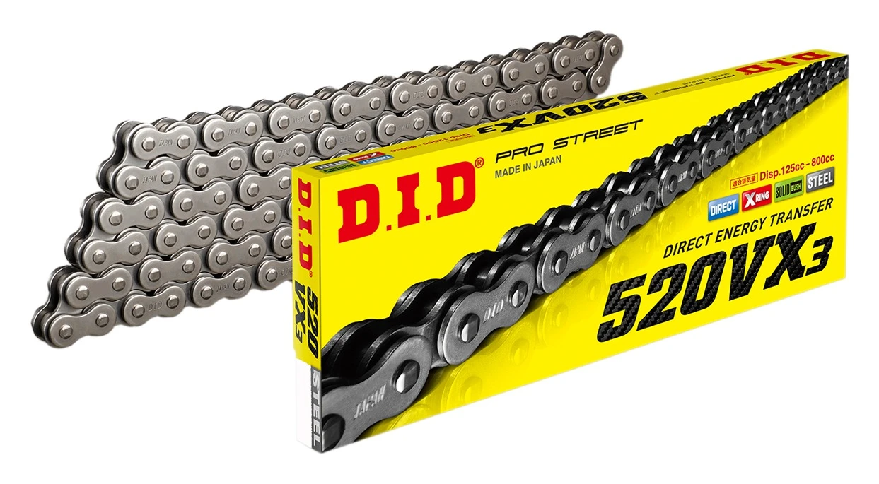 The DID VX Series Chain, the ultimate in performance and durability for your dual sport, sport bike or sport touring bike.