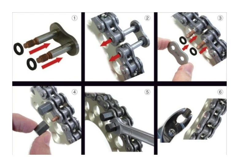 Included is a patented screw type master link which requires no special tools to install and provides a rivet-like fit.