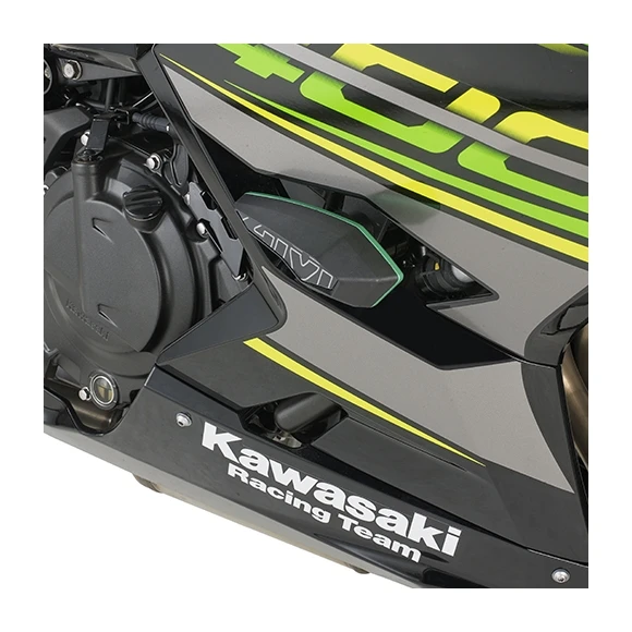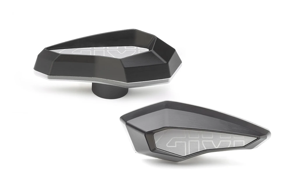 Givi frame slider kits consist of bike specific mounting brackets and aerodynamic, fiberglass-reinforced plastic sliders that are backed with plates of anodized aluminum. These Givi SLD01 Frame Slider sets are a pair of the plastic sliders backed with anodized aluminum. Bike specific mounting brackets are sold separately.