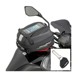 The GIVI Tanklock System eliminates the need for straps and magnets, and it’s specially welcomed on all those motorcycles with a plastic tank. A sturdy polypropylene retaining ring is mounted to the frame of the gas cap on the tank, and the bag is locked in position by the patented quick release mechanism. The operation is extremely quick: just drop the bag in place to lock it and pull the red spring loaded tab to release it.