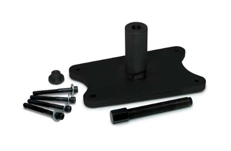 - Bolt to primary mounting holes and hand thread in pushing screw