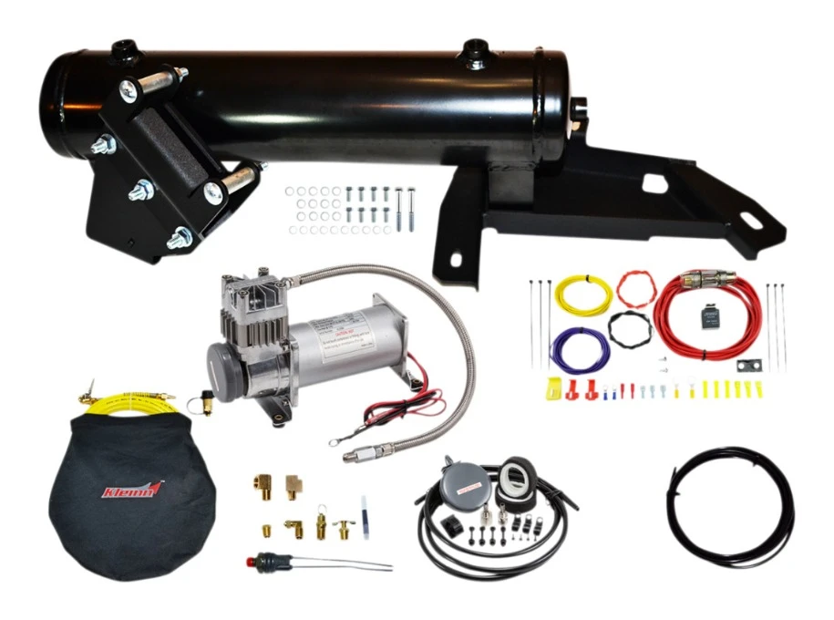Complete waterproof air compressor system without horn. Easily inflate your tires with the 100% bolt-on onboard system.