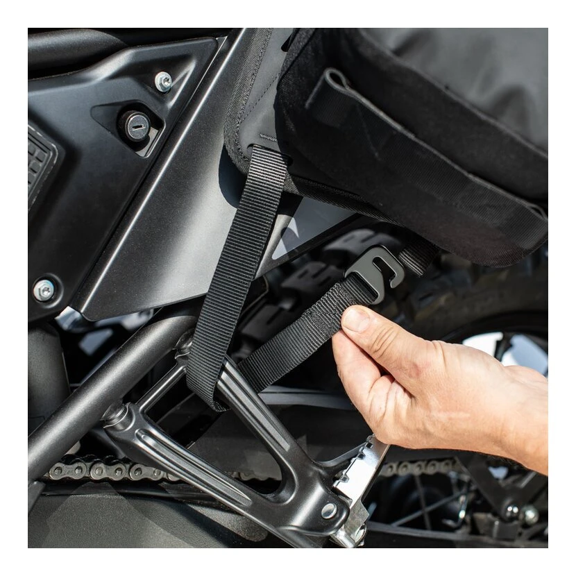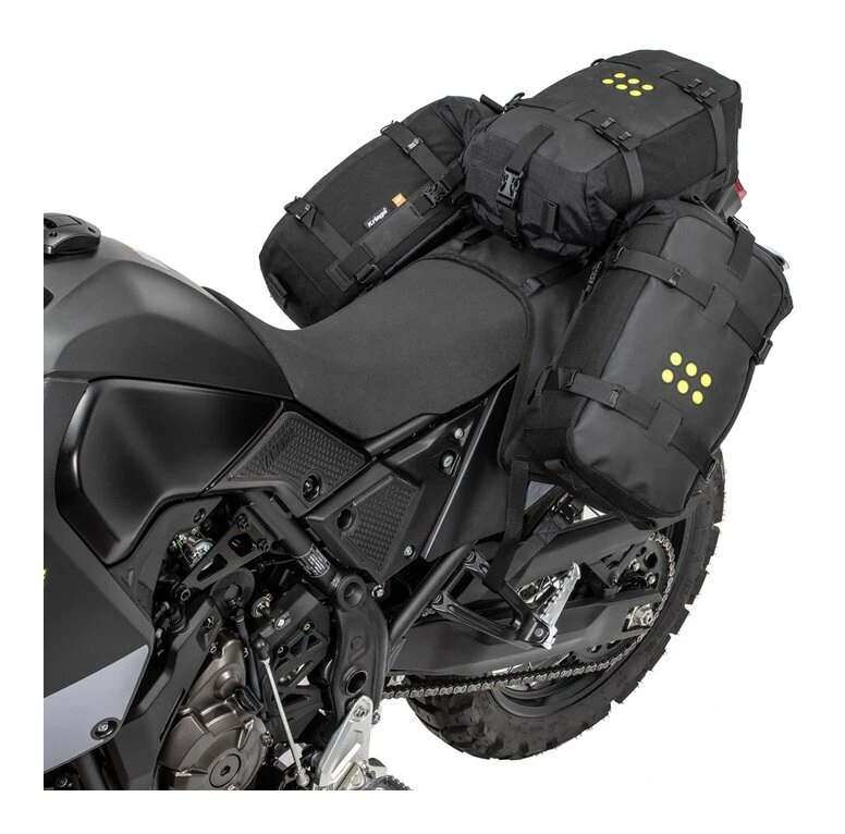 This OS-Base was designed specifically for the Yamaha Tenere 700, and after the initial setup, bags affix to your bike in just a few seconds. It is compatible with Kriega’s OS-6, OS-12 or OS-18 drypacks. Additional luggage, like your tent and sleeping bag, can be lashed down above the rear fender with included loop mounts. Once you’ve set up camp or reached your hotel, the latter of which we assume is a rare treat on an otherwise primitive back country journey, the entire system, bags included, can be removed in a matter of seconds.