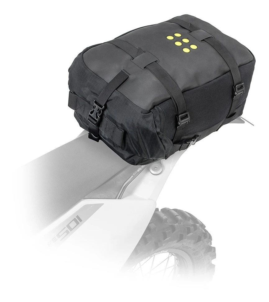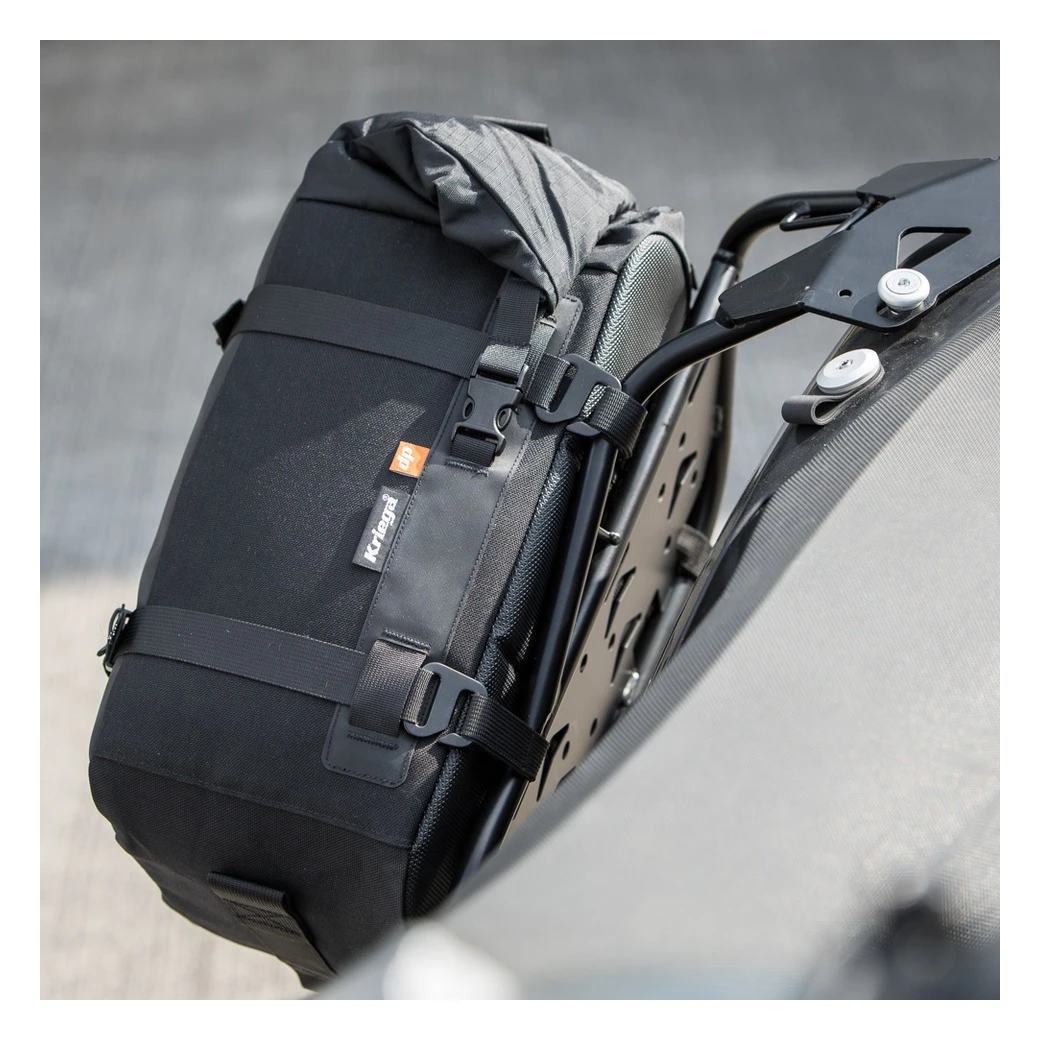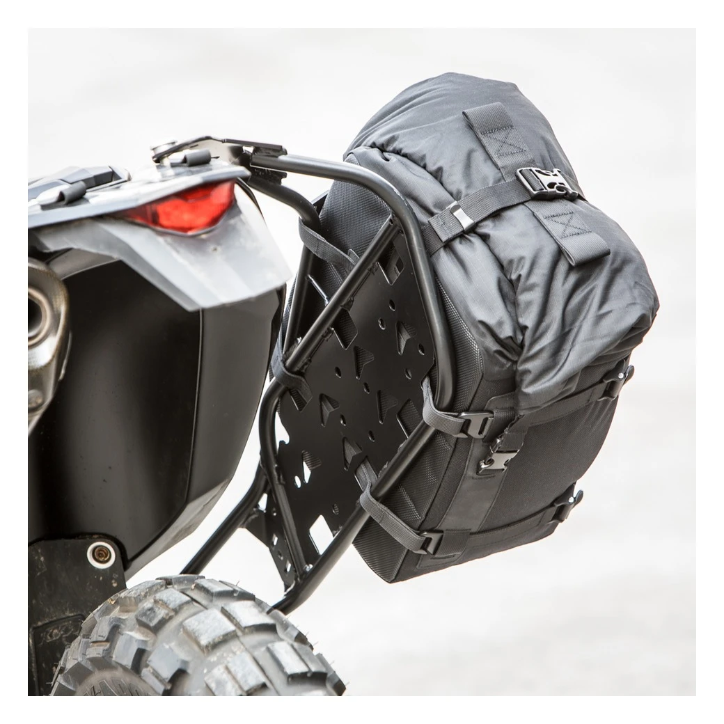 The Overlander-S series of roll-top, 100% waterproof bags feature semi-rigid walls for easy loading and shape retention. The OS-18 bags are intended as foundation saddlebags that readily accept the smaller bags within the series as modular tethers of supplemental storage. All OS-PACKS are 100% waterproof and constructed from ultra-abrasion resistant Hypalon and 1000D Cordura nylon that is ready to deal with the toughest of adventures.