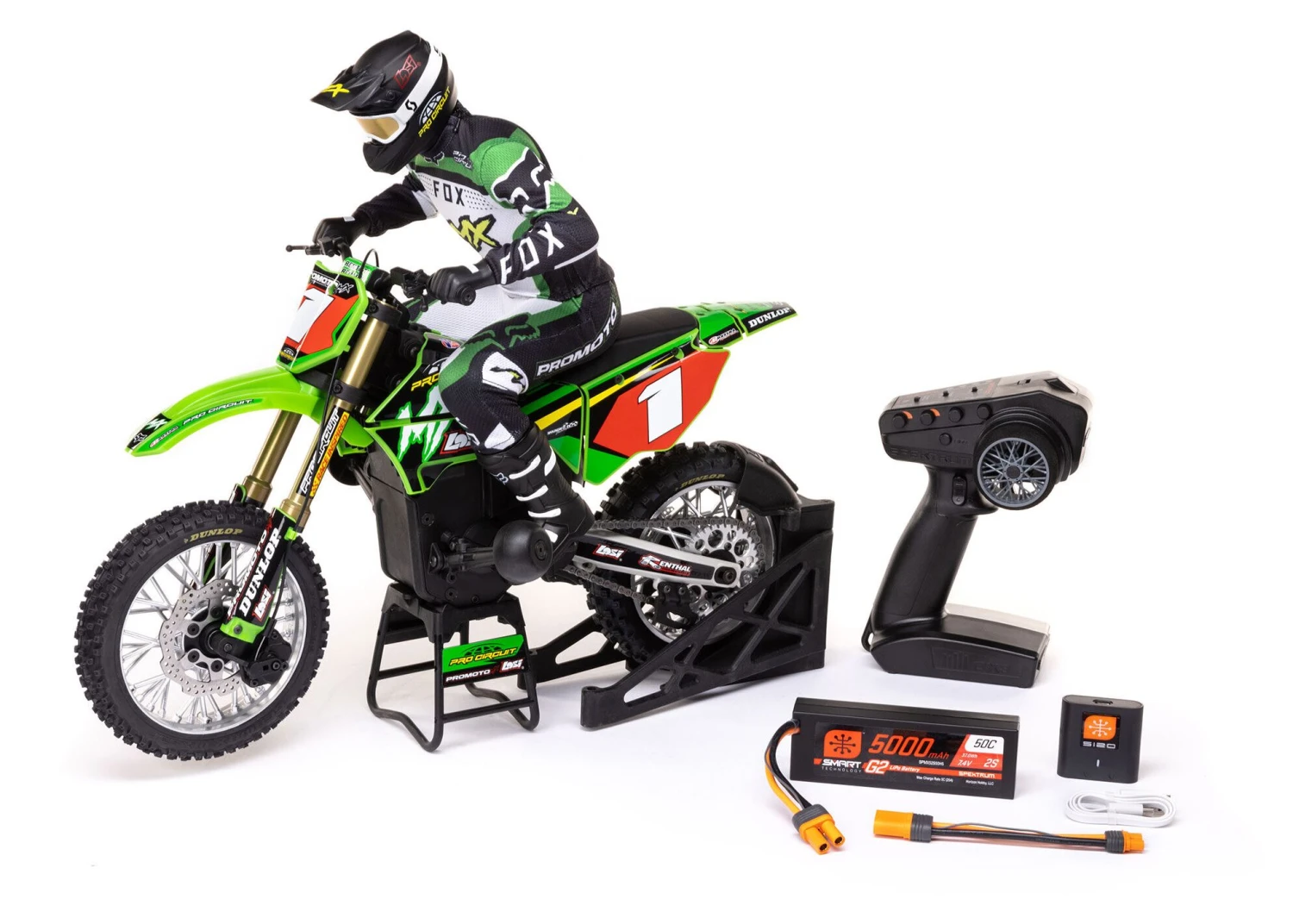 The combo kit includes everything you need to get ripping out of the box (battery and charger included). With a top speed of 40mph and up, the Losi Promoto-MX is ready to bring smiles to moto-enthusiasts of any age, anytime and anywhere!