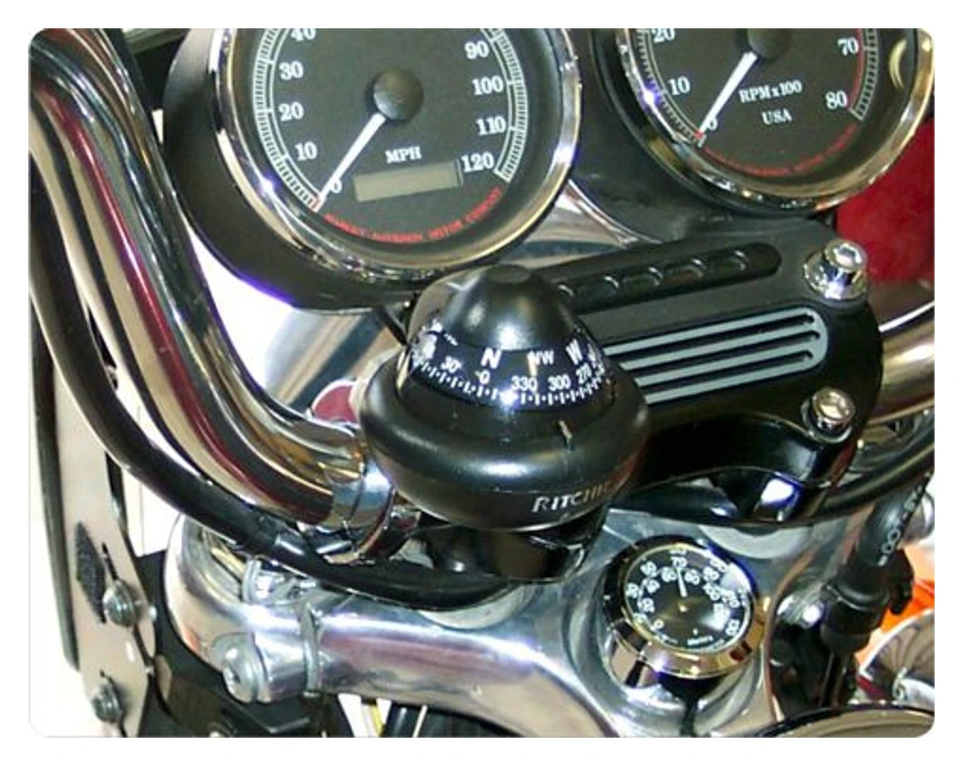 A compass is a valuable tool to any rider on remote back country roads or in the big city. Providing critical information about your direction in a clean, stylish, compact design that is as functional as it is beautiful. Marlin’s fully adjustable, easy to install compasses are molded in high impact, high temp black composite with triple chromed mounts.