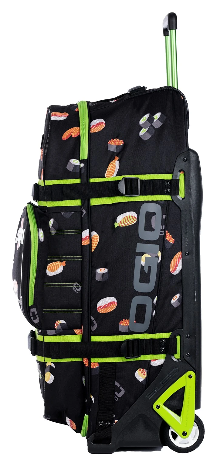 The Ogio Rig 9800 Gear Bag boasts the SLED (Structural Load Equalizing Deck) System, ensuring durability and optimal handling even in harsh conditions, alongside a wide mouth lid opening for convenient access to all gear compartments. Its large main compartment features adjustable dividers and a padded helmet chamber, complemented by multiple multi-use lid compartments, iFOM (integrated foam) construction for enhanced gear protection, heavy-duty oversized wheels with extra clearance, a secure hold compression strap system and a telescoping pull handle for effortless transport.