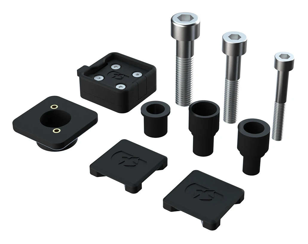 - Includes: 1 mount, 2 device adapters, (3) 55mm M6/M8/M10 bolts, (3) 20mm M6/M8/M10 spacers and 1 alcohol wipe