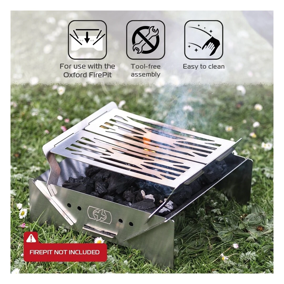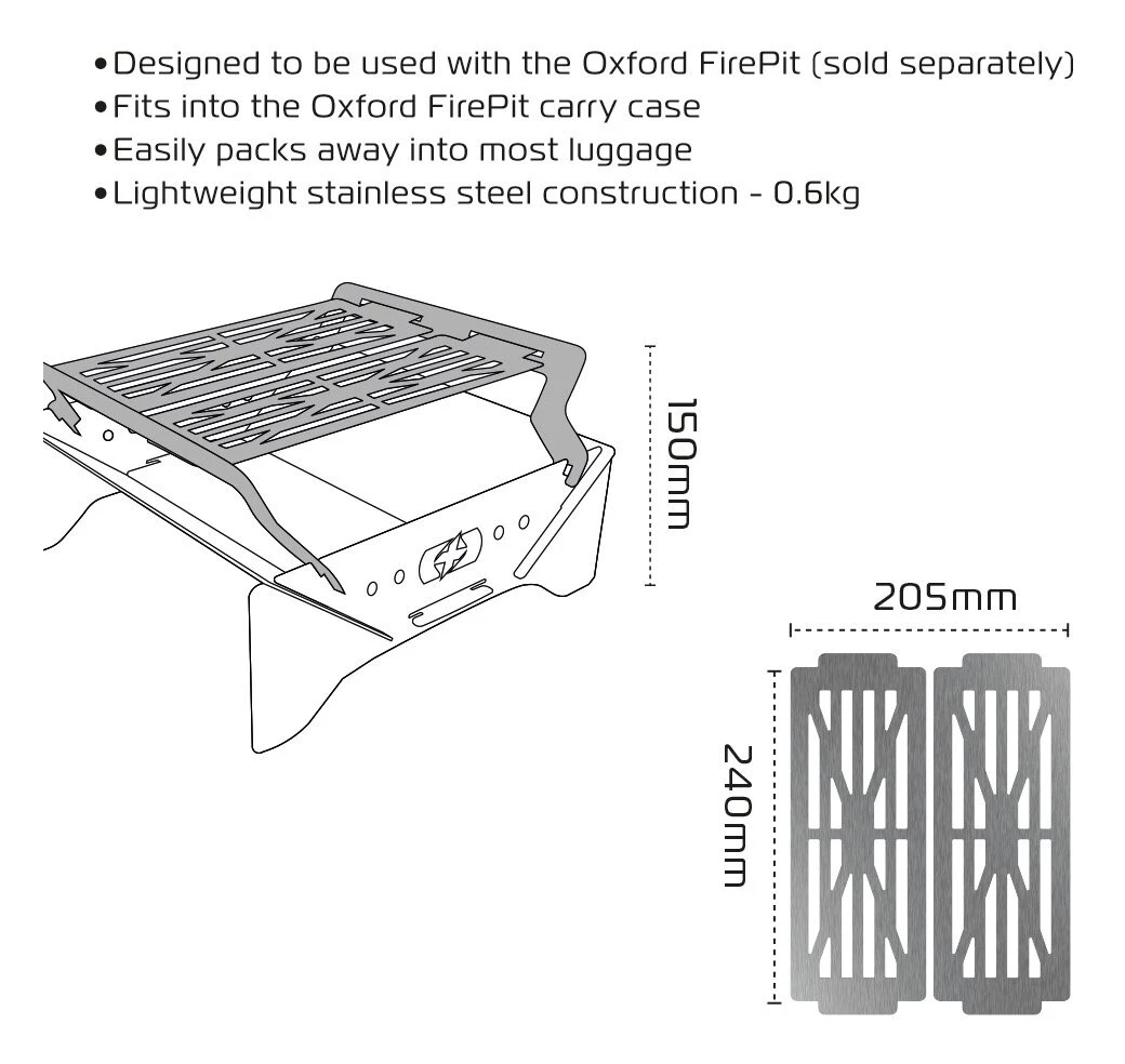 - Integrates with Oxford Camp Fire Pit to create a cooking / grilling surface (Fire Pit sold separately)