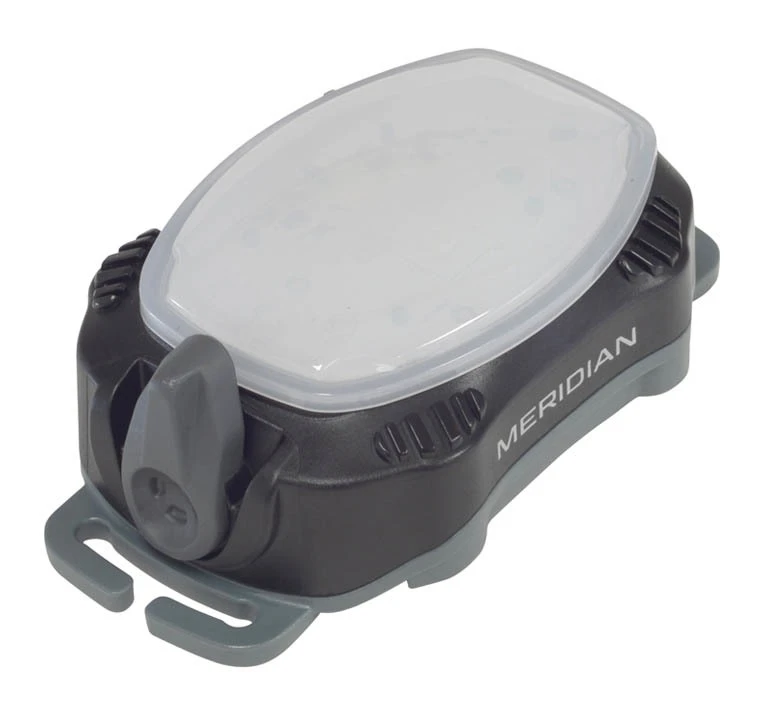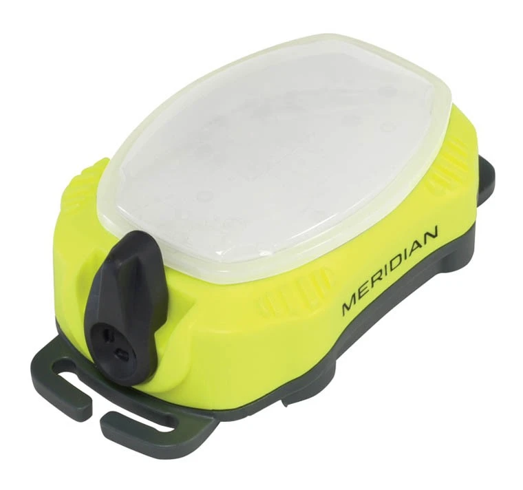 Loop the Meridian Strobe / Beacon into any one inch wide webbing strap and communicate your location by up to one mile. A toggle switch changes between red and white strobing modes.