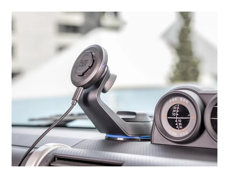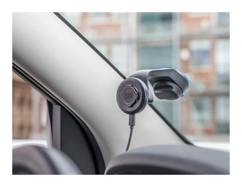 Featuring an industrial-strength suction cup and super rigid body for stability, the Quad Lock Car Mount allows you to mount your phone securely in your car. Easily change your phone to portrait or landscape with one motion thanks to a fully adjustable swivel ball mechanism. Optional Wireless Charging Head integration allows you to charge your phone quickly and easily.