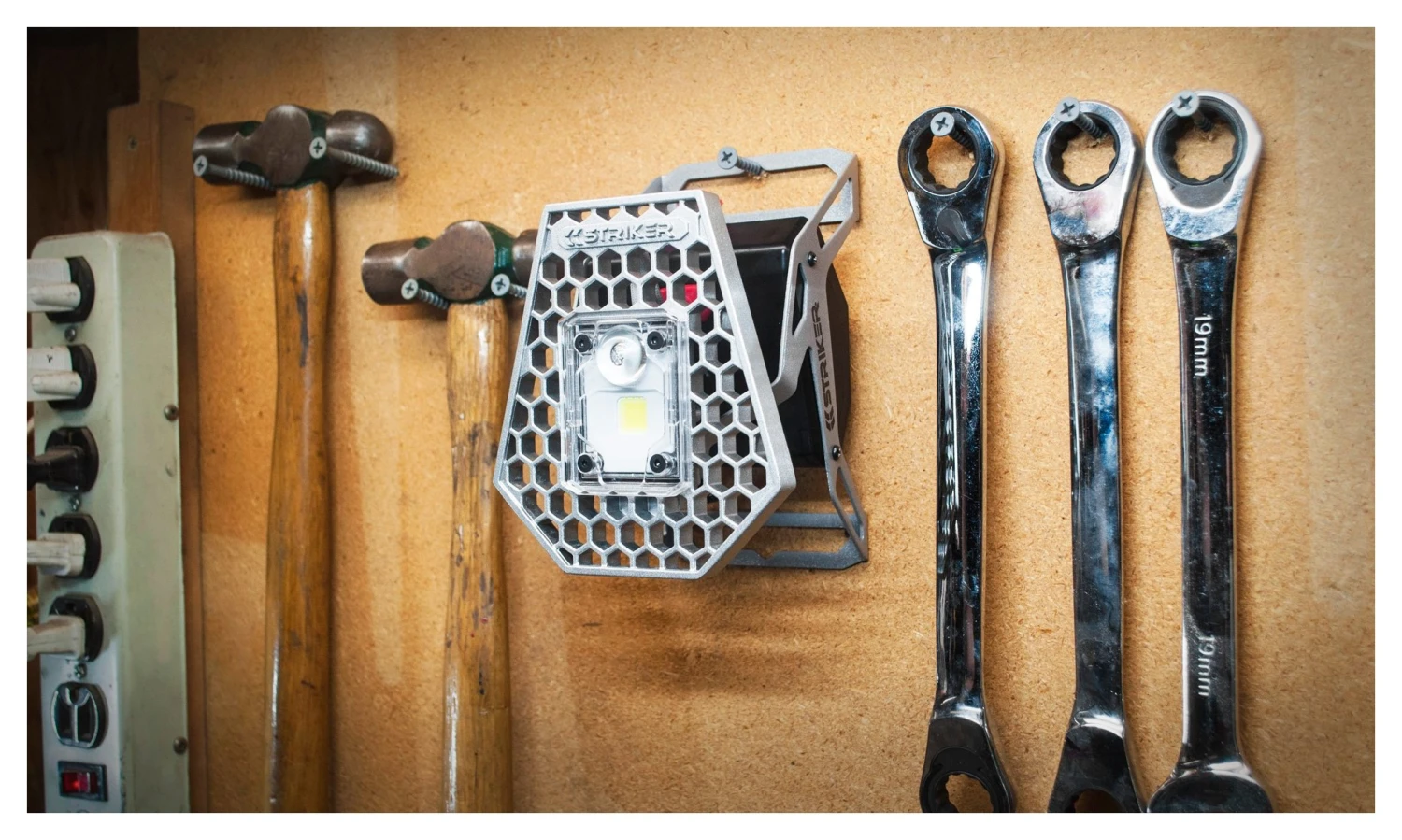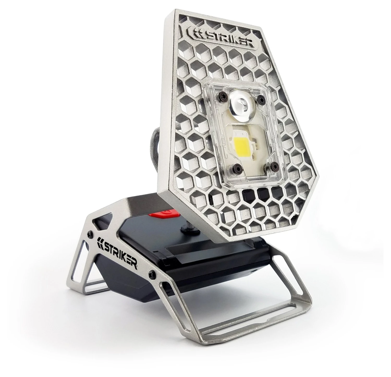 The Rover is a task light built for the garage. It features a rechargeable lithium ion battery pack and a sliding lens cover for switching between spot and flood modes. The brightness has low, medium and high settings and the cast aluminum head can pivot 180 degrees for casting light where you need it. Set the Rover on a table, hang it from a nail, or screw it to the top of a tripod.