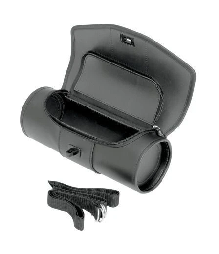Leading-edge style and construction matches a variety of motorcycles from customs to performance cruisers. Rugged 3mm SaddleHyde material and cylindrical shape works great holding tool rolls or just about any kind of cargo. Contents stay clean and dry with zippered opening covered by weather flaps fitted with 1/4-turn hasps that accept mini-padlocks for security. Made from light, but durable PVC-lined 150-denier polyester with sturdy zippers that permit over-packing but keep the elements away from your cargo. Comes with two strong, nylon straps with D-rings, plus hook-and-loop combo straps for easy mounting in a variety of positions.