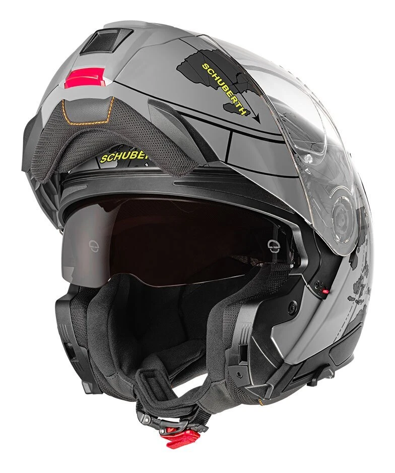 The Schuberth C5 Globe Helmet is the newest “C” helmet that continues to blend safety, superior aerodynamics and a light design. The unmistakable German engineering and radical, compact shell design of the Schuberth C5 set a new standard for premium modular touring helmets. Featuring a new liner and the same 2 shell sizes (XS-LG, XL-3XL), the lean form of the Schuberth C5 Helmet has been extensively optimized for both stability at speed and low weight to minimize fatigue on long tours. Discover a riding experience similar to sitting in the cabin of a luxury German sports car. The Schuberth C5 Helmet is designed for riders who accept only the best, and can appreciate the difference.