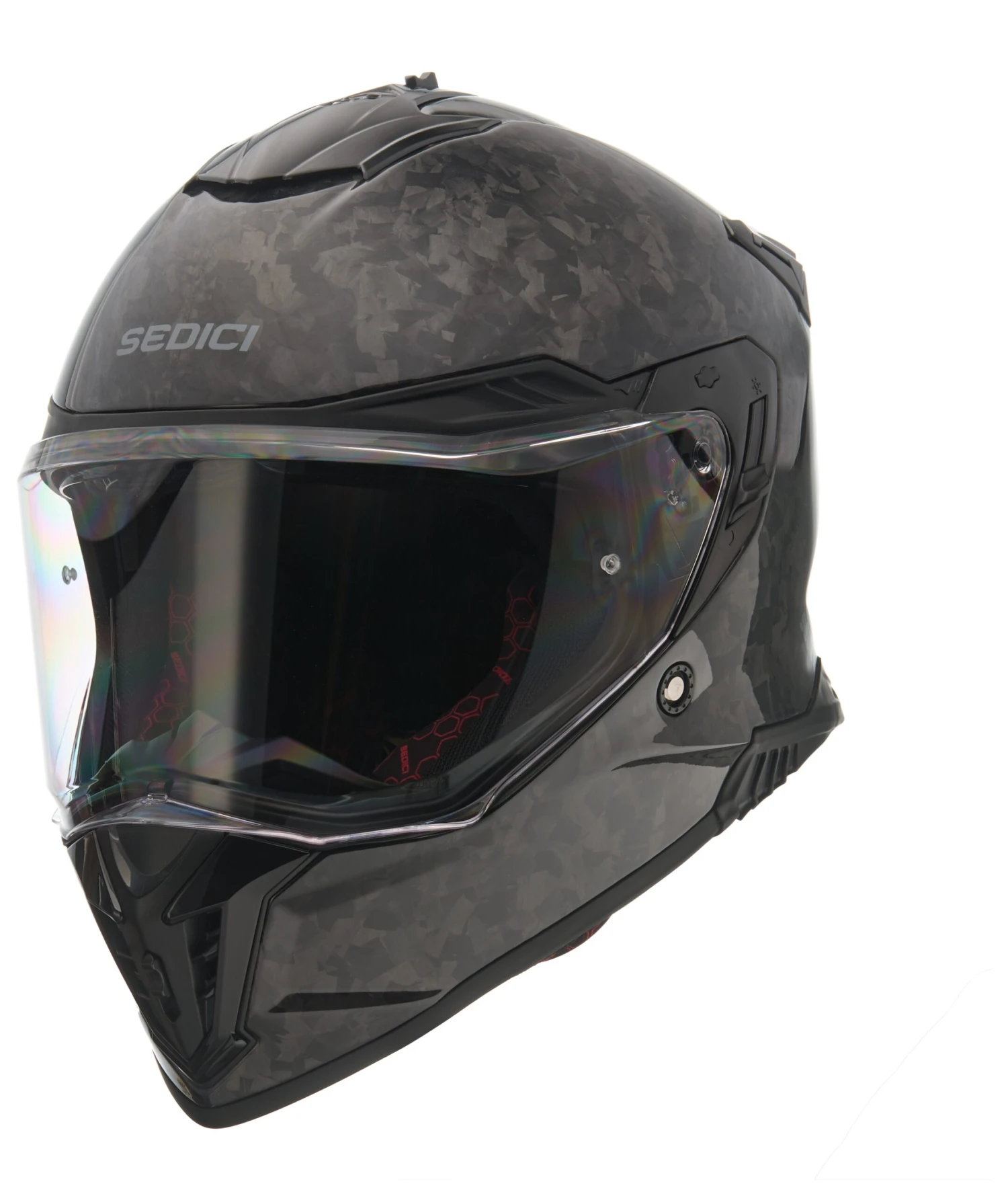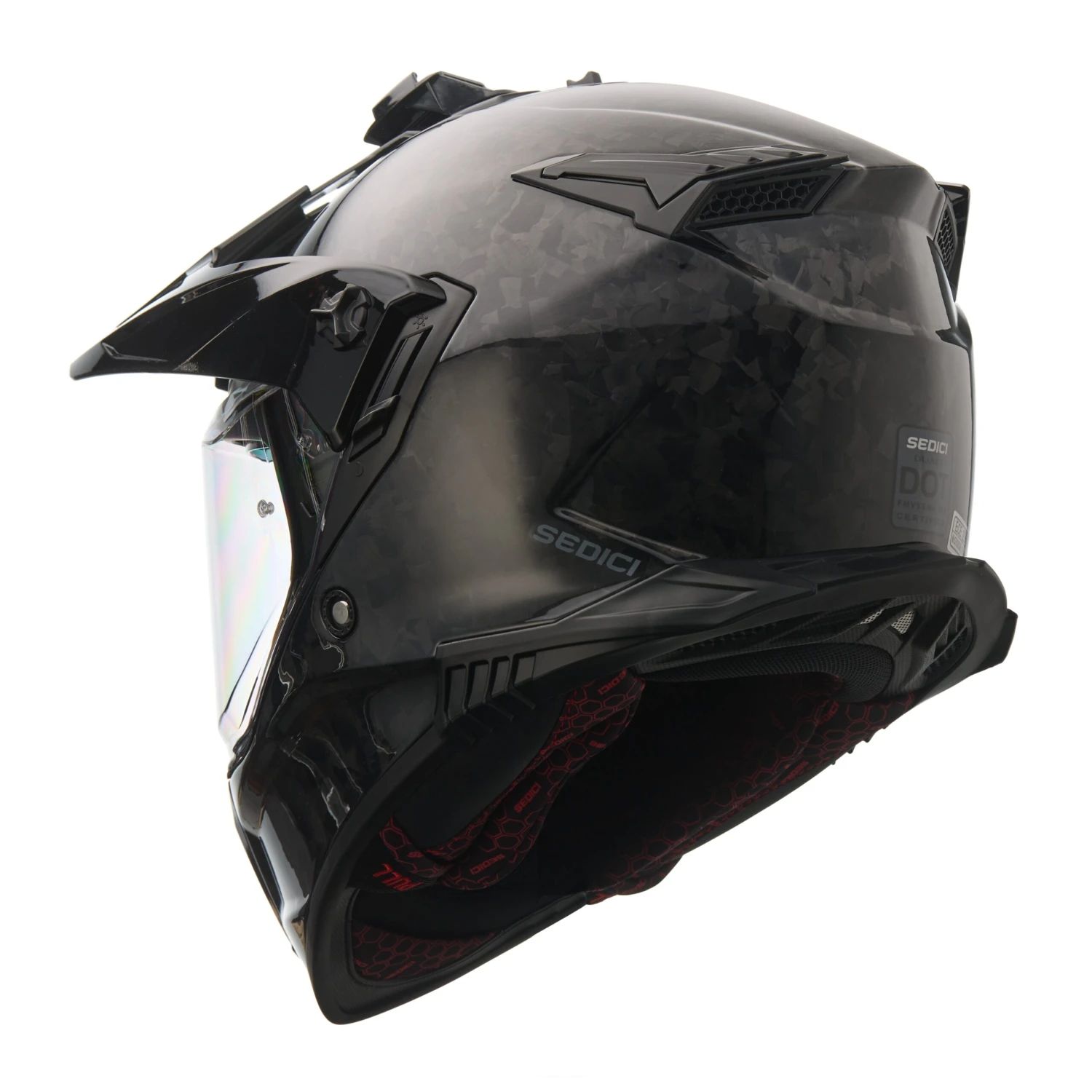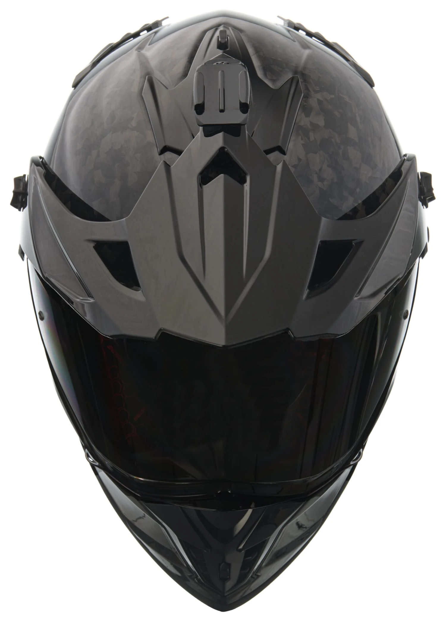The Duale Forged Carbon Helmet features a proprietary shell of forged carbon that allows it to be lightweight without sacrificing strength, so you can take on any trail with confidence! The aerodynamically tuned shape reduces lift and turbulence, so you can ride in comfort on and off-road. A toolless quick-release peak visor, anti-scratch/pinlock ready face shield and internal dark smoke drop down visor all work together to ensure a clear field of view and optimal versatility.