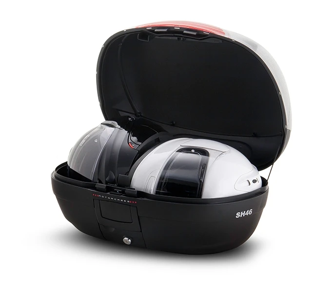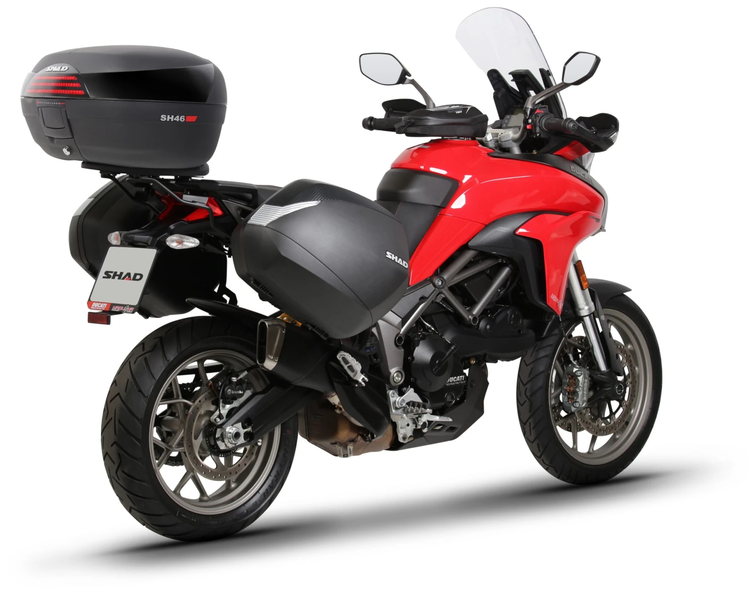 Park your bike then store your helmet and jacket in the rugged and practical Shad SH46 Top Case. The SH46 includes a quick release universal mounting plate that can bolt up to most existing luggage racks. Don’t have a luggage rack? Search “Shad Top Case Racks” for a bike specific mounting option.