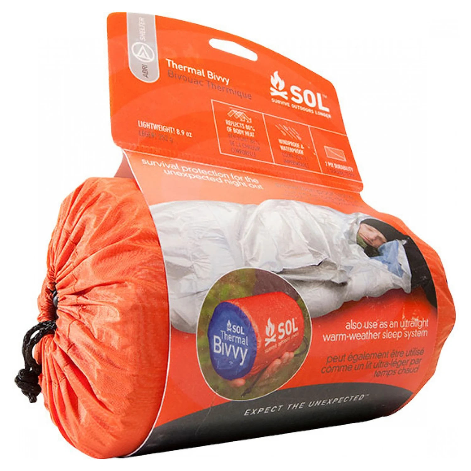 The Survive Outdoors Longer (“SOL”) Thermal Bivy packs down to small size to easily stow away in your gear, ready to go. Always be prepared for the unexpected. Don’t be S.O.L.