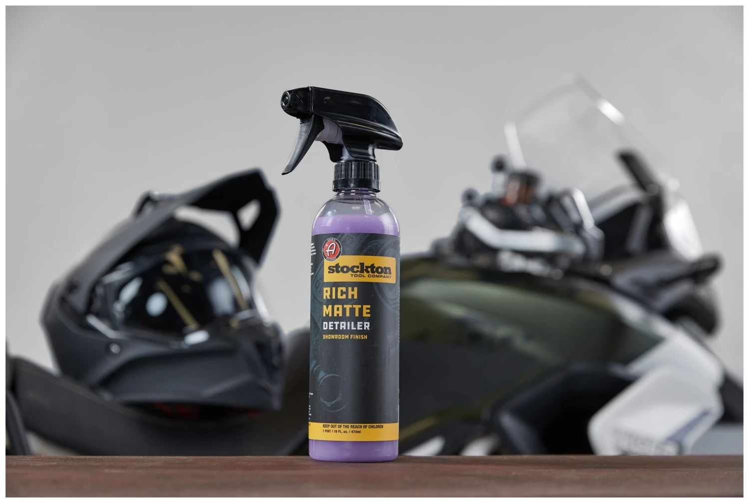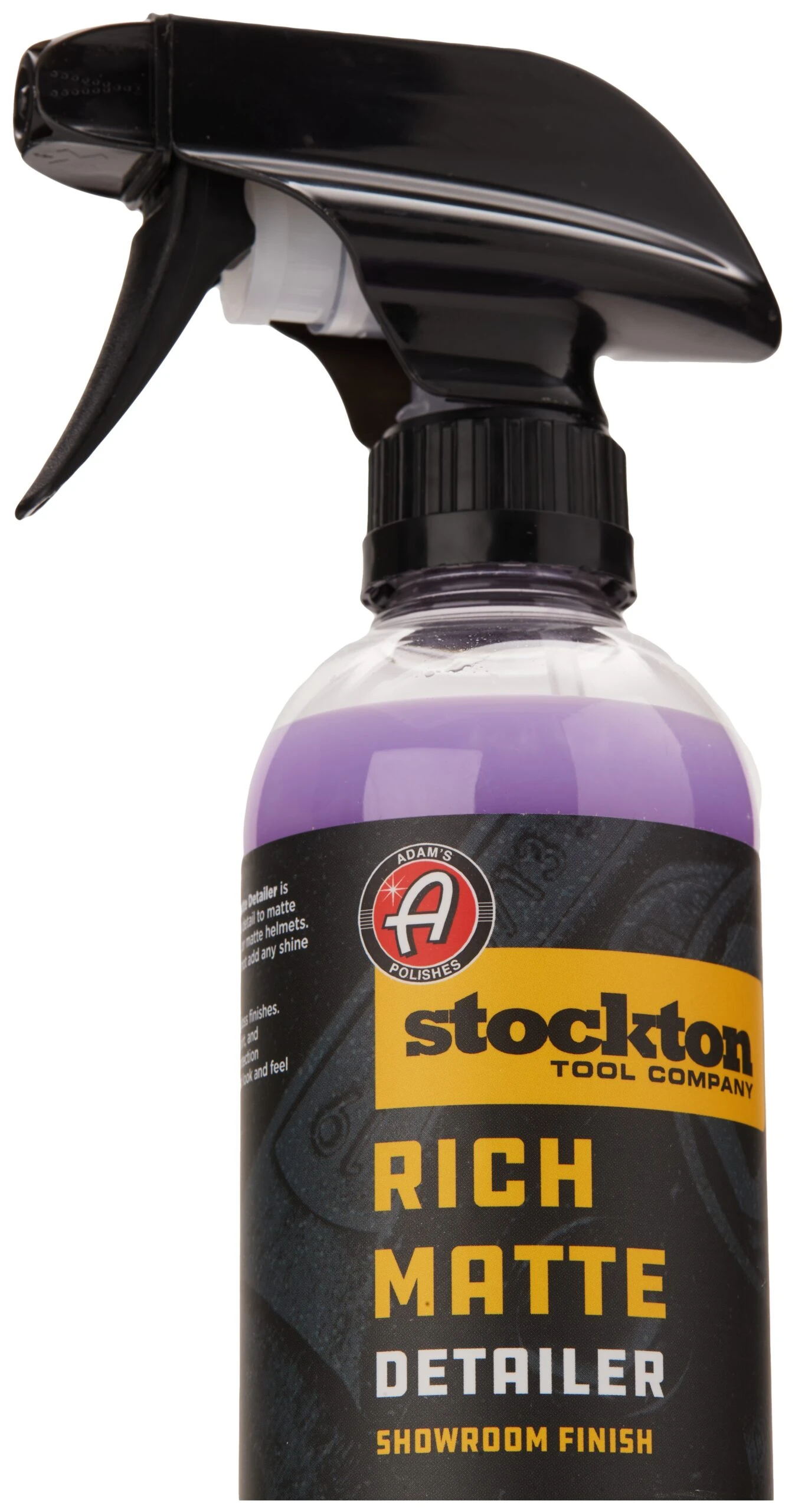 Stockton by Adam’s Rich Matte Detailer is designed to perform a quick detail to matte and satin paint, vinyl wraps, or matte helmets. Stockton’s Rich Matte Detailer will not add any shine or streaks to your finish.