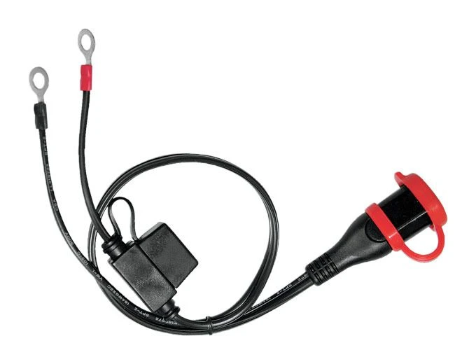 Connect this lead permanently on your vehicles’s battery, leave the connector in an easily accessible place for quick connection. The weatherproof rubber cap and sheath protects the connector against ingress of liquid or dirt.