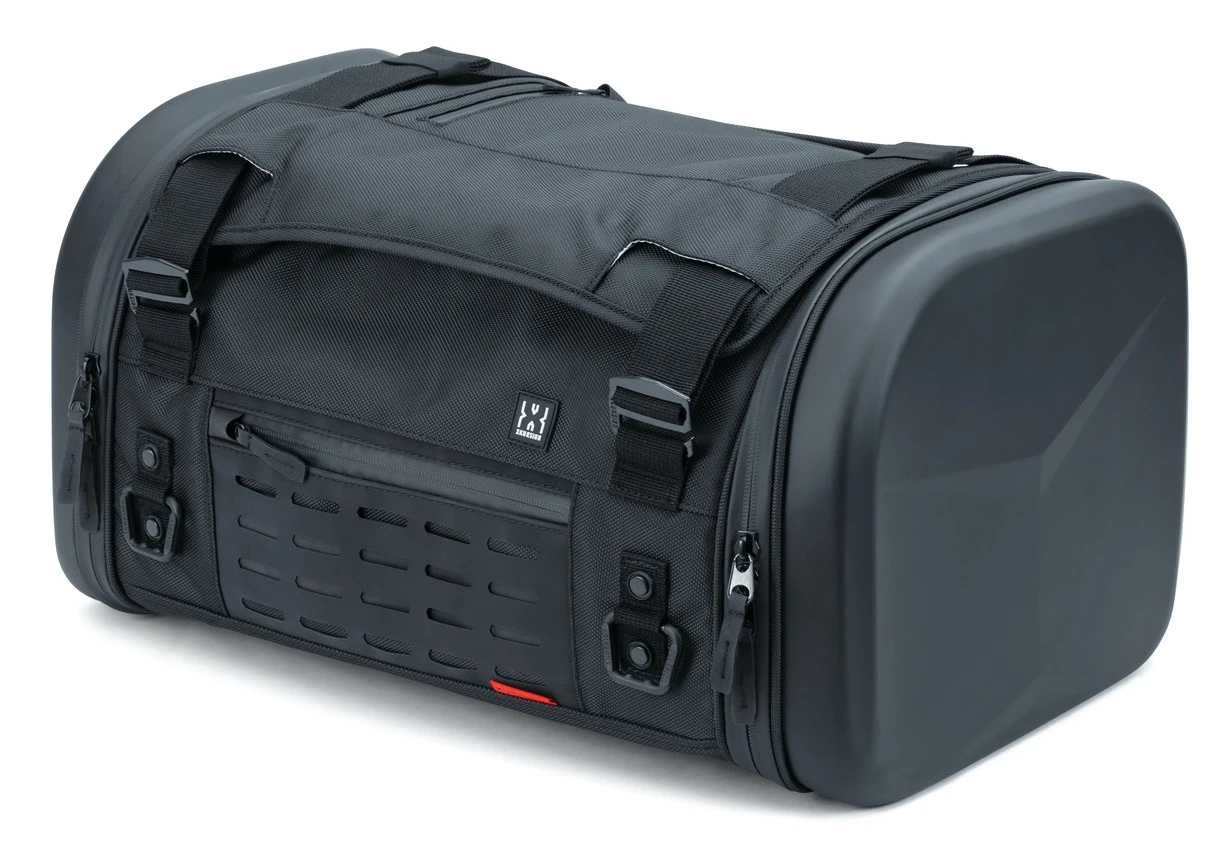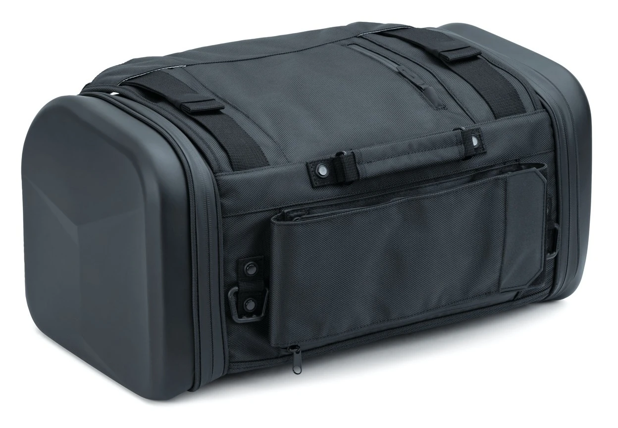 - Integrated heavy-duty welded D-Rings, sissy bar and mounting straps to mount to additional bags, luggage racks or passenger seats